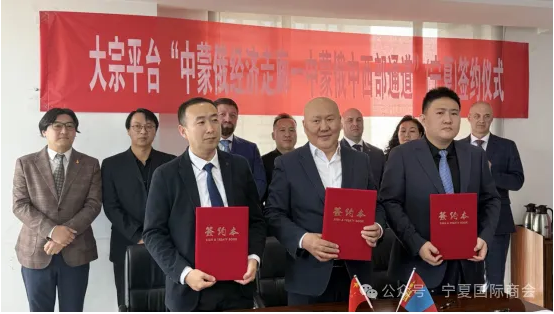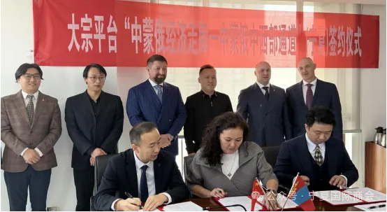 仪式上,中、蒙、俄三方代表分别致辞,宁夏秦联能源集团有限公司、大宗平台分别与俄罗斯库兹巴斯运输公司三方签署了《大宗商品跨境交易直通平台跨境贸易运输合作框架协议》,与蒙古国奥吉尔矿产有限责任公司、蒙古工业和矿产分销有限公司方签署了《大宗商品跨境交易直通平台跨境贸易合作框架协议》。随后举行授牌仪式,蒙古国奥吉尔矿产有限责任公司、蒙古工业和矿产分销有限公司、俄罗斯库兹巴斯运输公司正式成为大宗平台二级业务发展公司,标志着大宗平台本地化运营迈出新步伐。