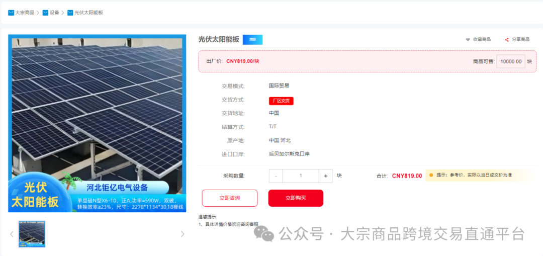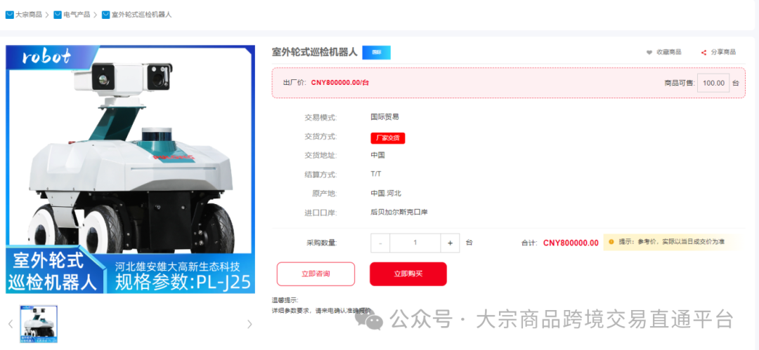 雄大科技:立足雄安新区,拥有全产业链布局和多项专利,承接大量重点项目,并与国际企业深度合作,具备较强的成果转化与营收能力。上架电站配套设备,此外,建筑材料、无人机、农机等多领域优质产品,均能借助大宗平台的渠道优势,高效拓展海外市场,拓宽外销路径。