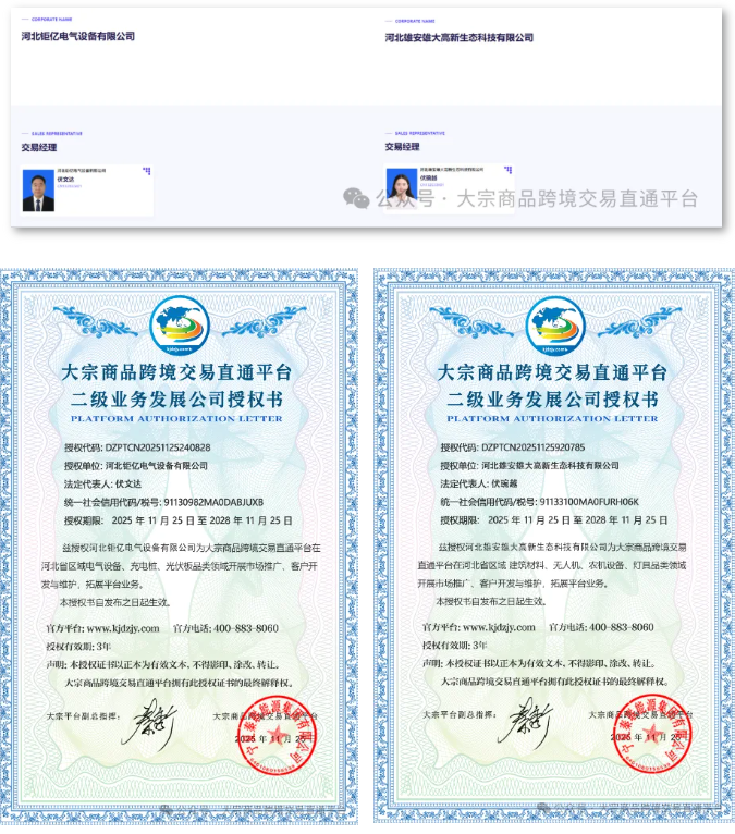 近日,河北钜亿电气设备有限公司(钜亿电气)与河北雄安雄大高新生态科技有限公司(雄大科技)正式加入大宗平台,开展二级业务合作。此举将进一步巩固平台在河北的产业基础,并通过多方协同增强其在国内外市场的布局能力。